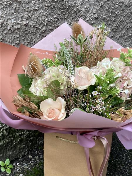 Pretty nudes and pinks including a few dried elements totally on trend for the perfect gift