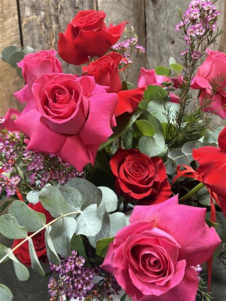 A dozen roses in mixed hot pink and red for that real valentines feel ❤️